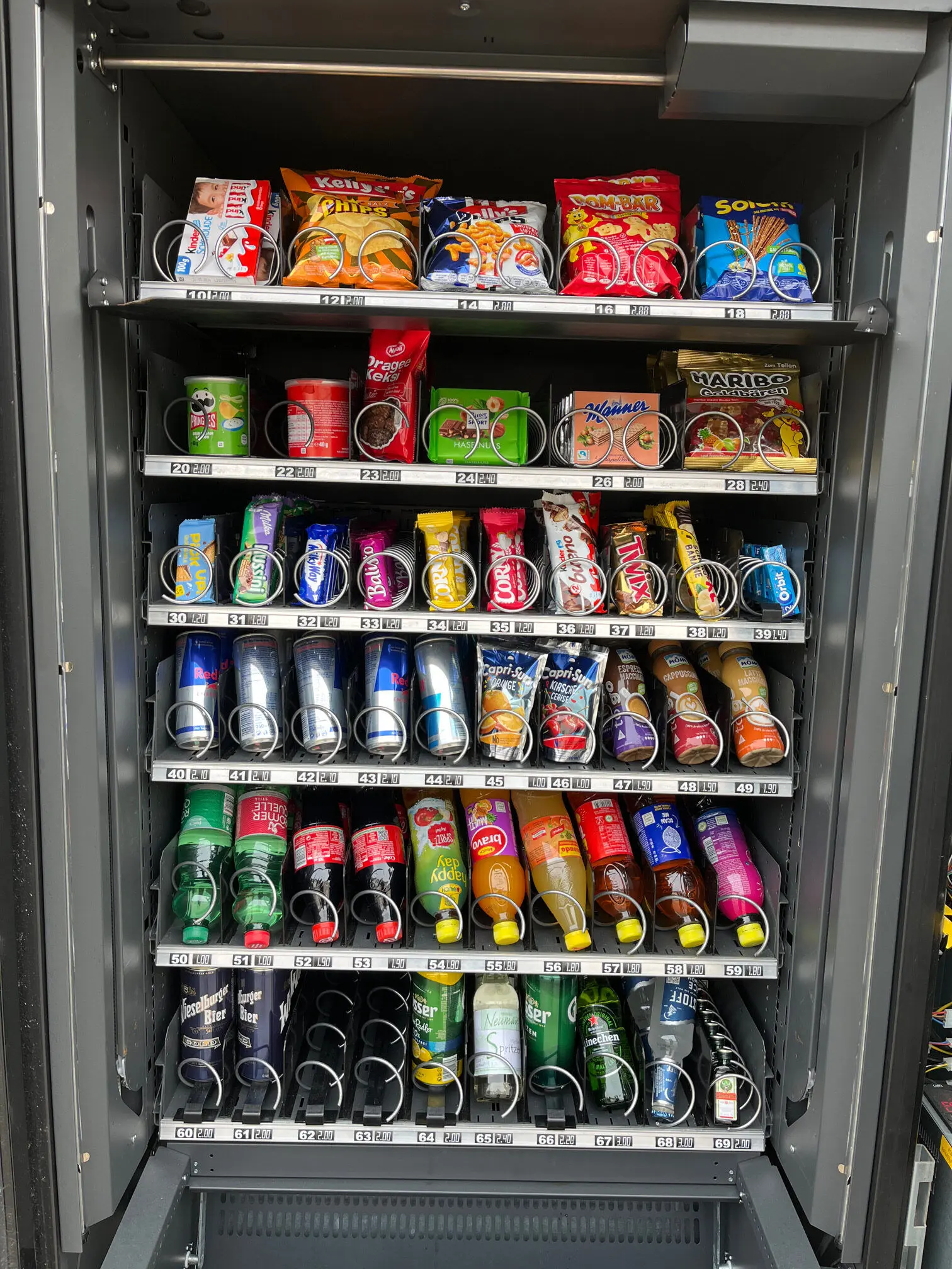 Dank unseres Snackautomaten bieten wir jetzt Imbisse und Getränke rund um die Uhr – das Investment hat sich ausgezahlt.
