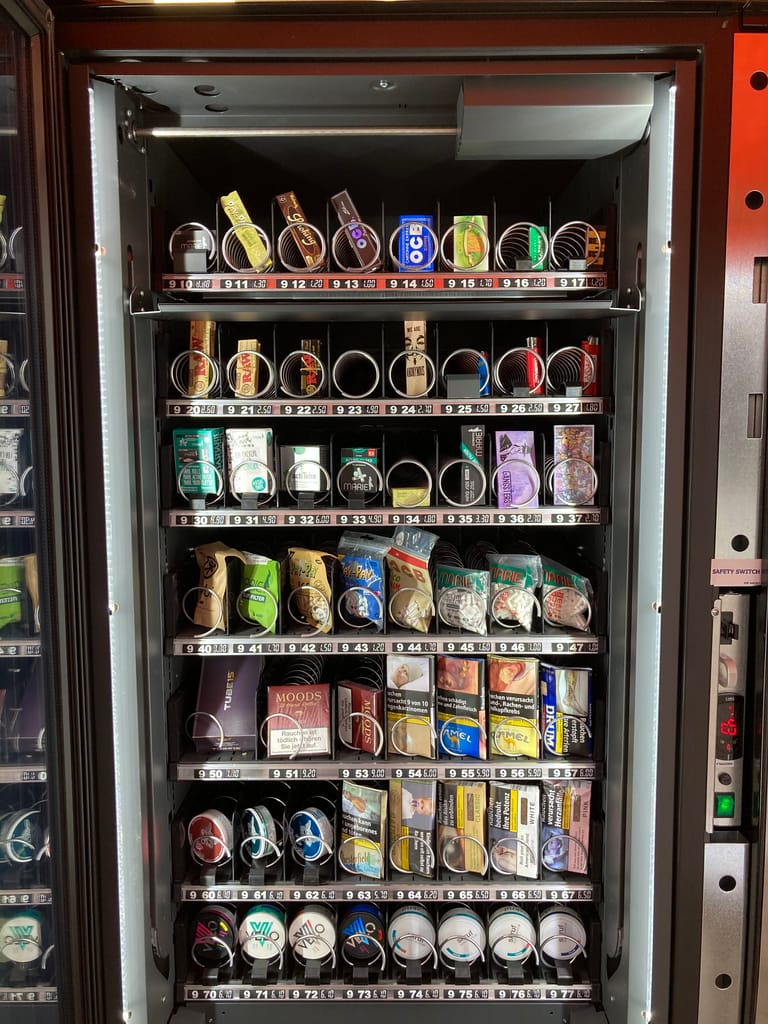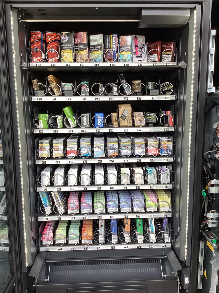 Ein High-Tech-Automat von Easy Vending ist nicht nur ein klassischer Zigarettenautomat – unsere Modelle bieten höchste Funktionalität bei maximalem Bedienkomfort und optimaler Warenpräsentation. Egal ob Sie Zigaretten, Pouches, Papers, Filter oder Getränke verkaufen möchten, jeder Schacht wird individuell angepasst und sorgt für eine sanfte Warenausgabe. Ihre Kunden werden begeistert sein!