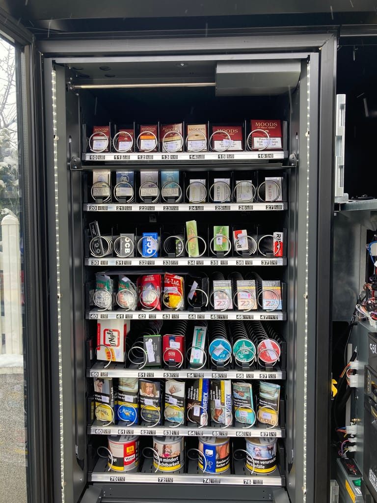 Wir achten bei Zigarettenautomaten auf Qualität und Funktionsvielfalt – für einfache Bedienbarkeit und zuverlässige Verfügbarkeit 24 Stunden am Tag, 7 Tage in der Woche. Dank individueller Schachtanpassung ist der Verkauf jeglicher Produkte möglich, wie beispielsweise Einzelpackung Zigaretten, ganze Stange Zigaretten, Snus, Tabakbeutel zum Selbstdrehen, Papers (Zigarettenpapier), Pouches, E-Zigaretten, eLiquids, Vaporizer (Verdampfer), Vape Produkte, CBD-Tropfen, Grinder und vieles mehr. Ein Warenlift sorgt für sanfte Warenausgabe und ein High-Tech-Kühlsystem für perfekte Kühlung – auch an sonnigen Plätzen. Die integrierte, energiesparende LED-Beleuchtung präsentiert Ihre Produkte auch bei Nacht ideal.