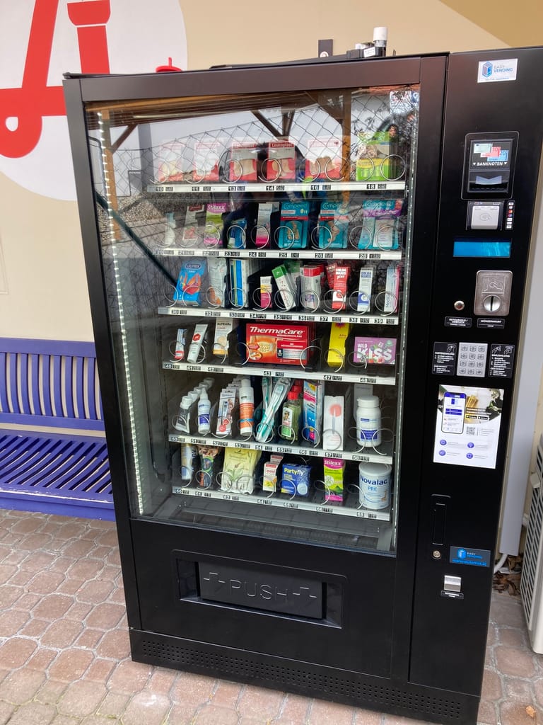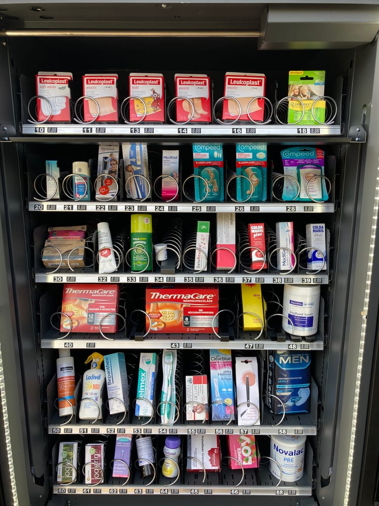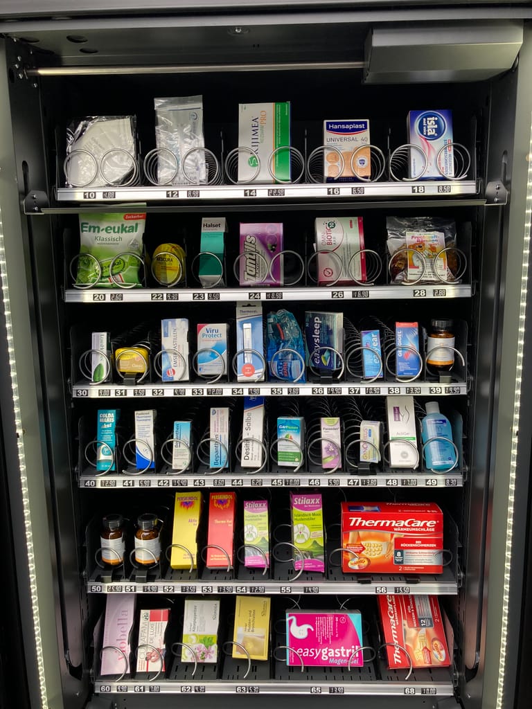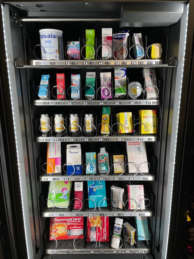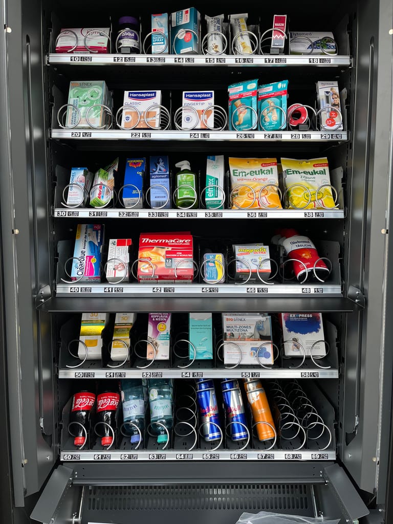 Prescription and consultation-required medicines may not be sold via a vending machine – this is regulated by law. A pharmacy vending machine from Easy Vending is therefore designed for over-the-counter products: from bandages, ointments, and cough drops to sunscreen and insect repellent to cosmetics, care products, and baby food.