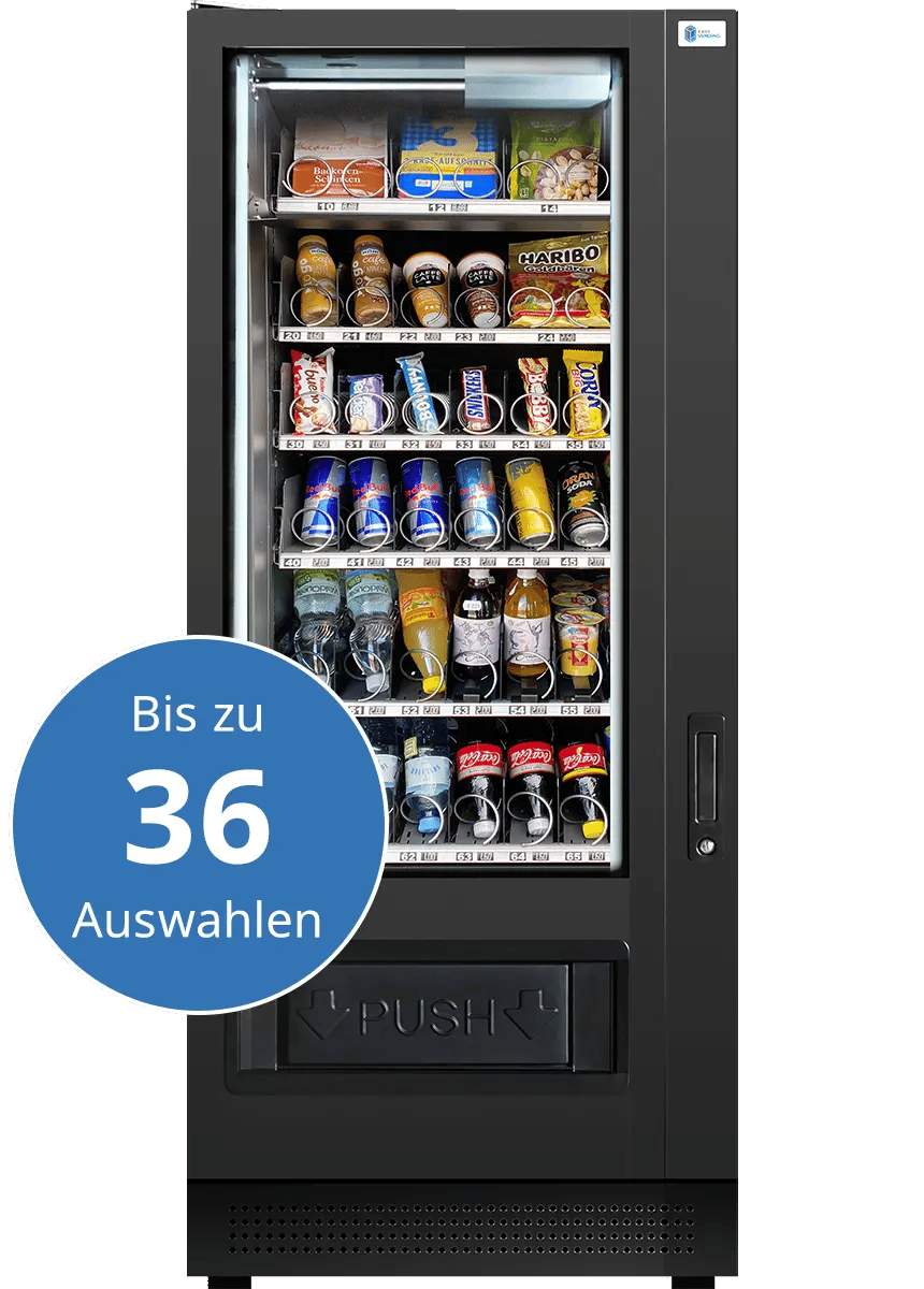 You would like to rent, buy or lease a vending machine? Generate more revenue and sell your products directly – without additional staffing requirements. Whether snack machine, beverage machine or vending machine – we customise every machine model precisely to your needs, products and usage frequency. Our models come equipped as standard with a banknote reader and coin changer, and are also available with card payment and age verification upon request. Thanks to energy-efficient LED product lighting, optimal product presentation is ensured even at night. A product lift provides gentle product dispensing, particularly for sensitive items such as wine, eggs, hygiene products and much more. The Easy Vending telemetry connection informs you via app notification about revenues, machine sales and stock levels.