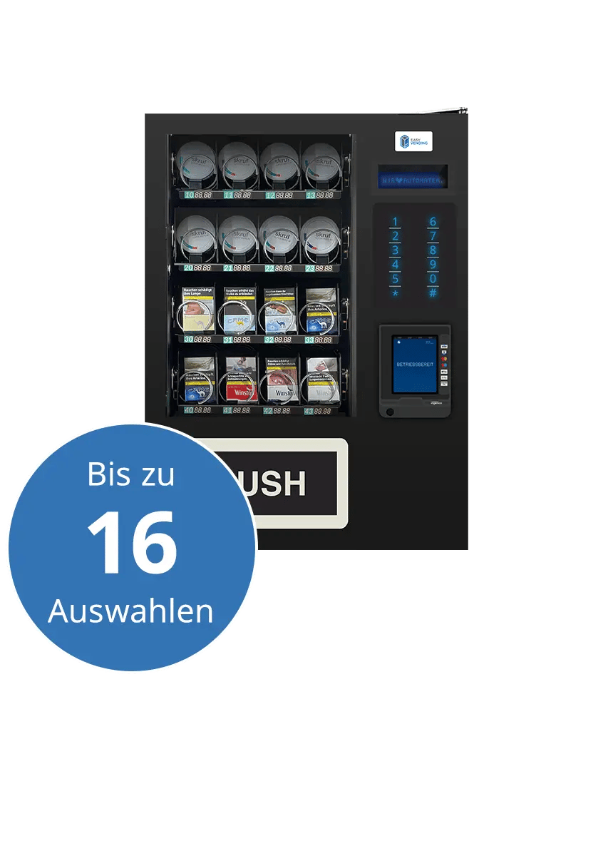 | The Easy Vending Table Top S4 is a compact tabletop unit with four shelves for up to 16 products. Without cooling, it is ideal for non-perishable items such as snacks, confectionery or non-food products – it is particularly popular as a vape vending machine for e-liquids, pods and accessories. Thanks to its small size, it can be flexibly placed on tables, counters or with an optional base cabinet. This makes the S4 the ideal solution for shops, petrol stations, kiosks or catering businesses looking for an affordable and reliable vending machine. | |