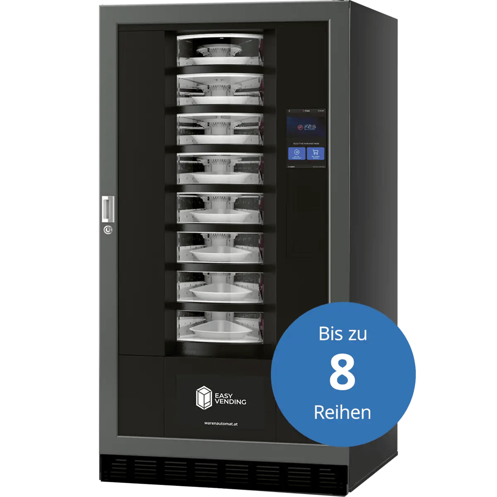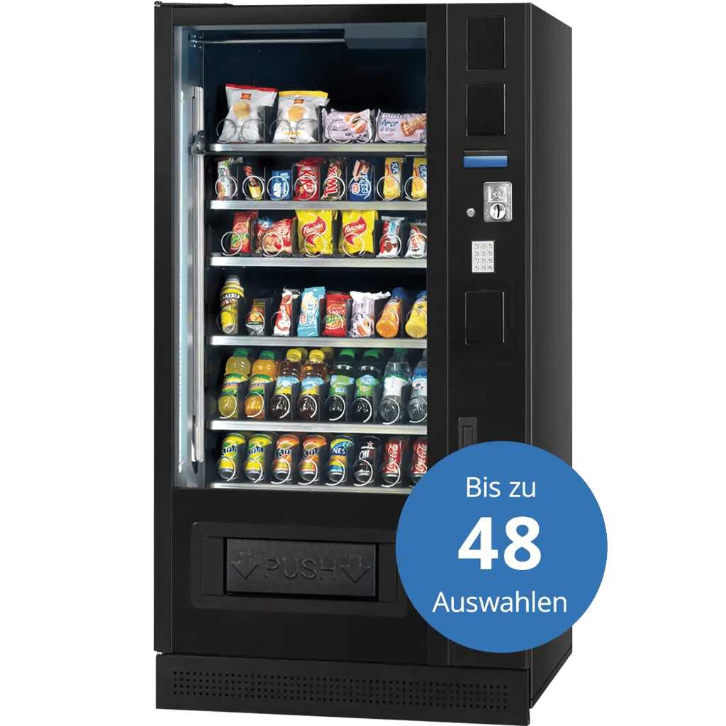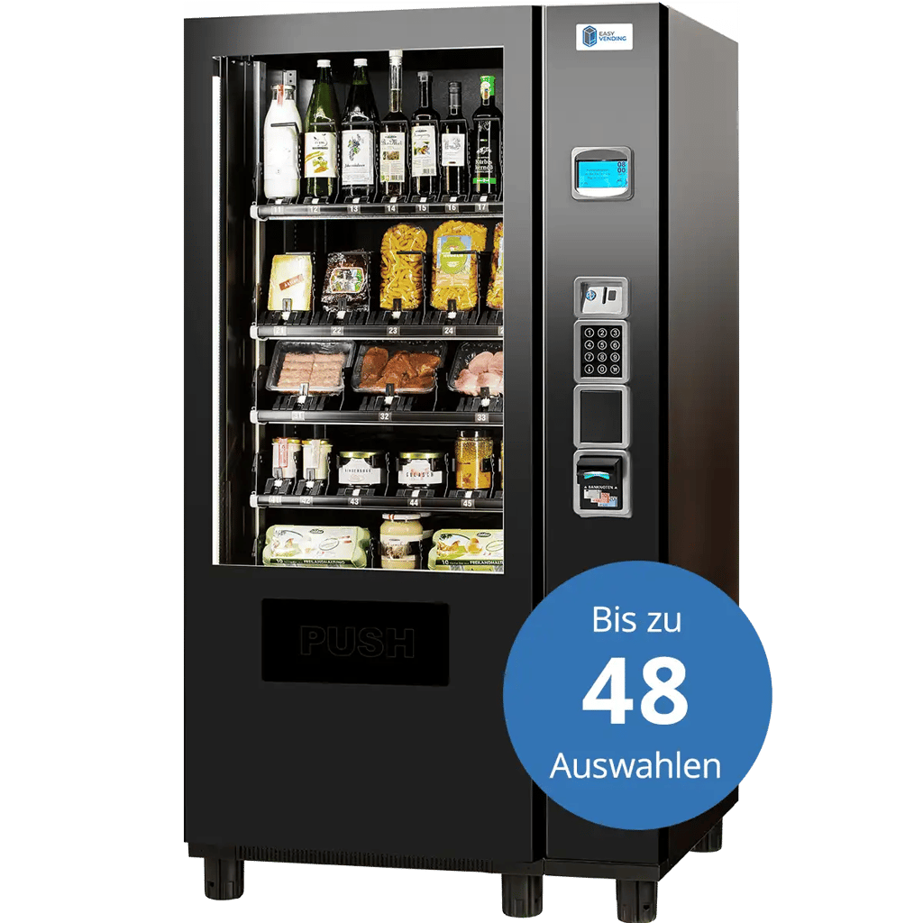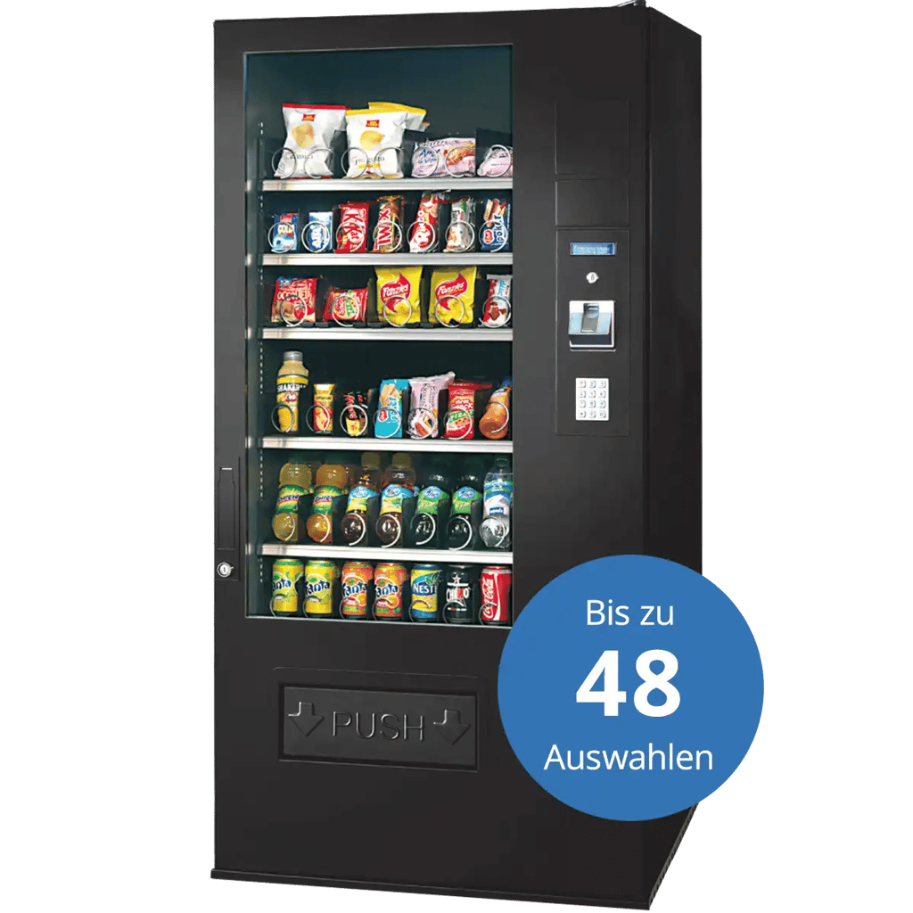 You would like to rent, buy or lease a vending machine? Generate more revenue and sell your products directly – without additional staffing requirements. Whether snack machine, beverage machine or vending machine – we customise every machine model precisely to your needs, products and usage frequency. Our models come equipped as standard with a banknote reader and coin changer, and are also available with card payment and age verification upon request. Thanks to energy-efficient LED product lighting, optimal product presentation is ensured even at night. A product lift provides gentle product dispensing, particularly for sensitive items such as wine, eggs, hygiene products and much more. The Easy Vending telemetry connection informs you via app notification about revenues, machine sales and stock levels.