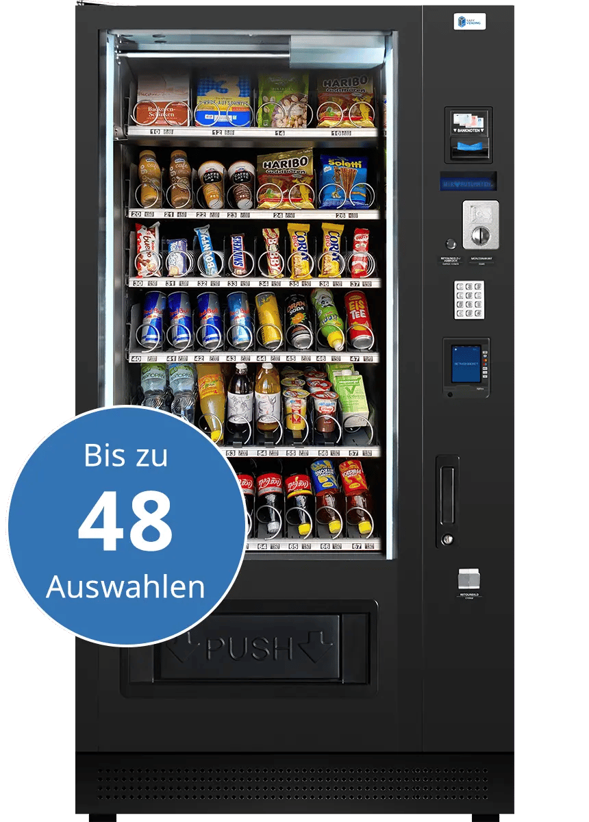 You would like to rent, buy or lease a vending machine? Generate more revenue and sell your products directly – without additional staffing requirements. Whether snack machine, beverage machine or vending machine – we customise every machine model precisely to your needs, products and usage frequency. Our models come equipped as standard with a banknote reader and coin changer, and are also available with card payment and age verification upon request. Thanks to energy-efficient LED product lighting, optimal product presentation is ensured even at night. A product lift provides gentle product dispensing, particularly for sensitive items such as wine, eggs, hygiene products and much more. The Easy Vending telemetry connection informs you via app notification about revenues, machine sales and stock levels.